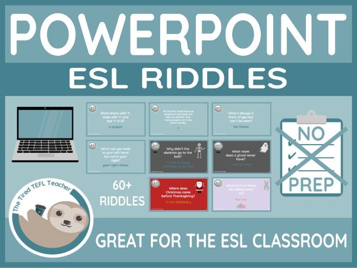 A great little powerpoint with 60+ riddles to get your upper-intermediate/advanced ESL teen and adult learners thinking. Great as a warm up or final activity. Simply click to reveal the answers.