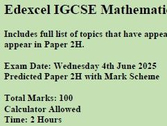 Edexcel IGCSE Mathematics ( 4Ma1) Predicted paper 2 H Summer 2025