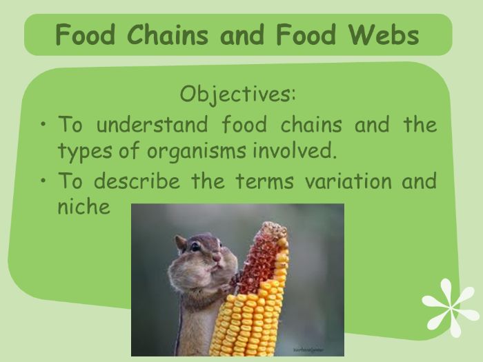 Lesson on food chains, webs and variation starting basic and getting more advanced