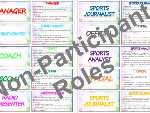 Personally, I have put each role into a lanyard which is easy to store and hand out to students, plus making them last longer.