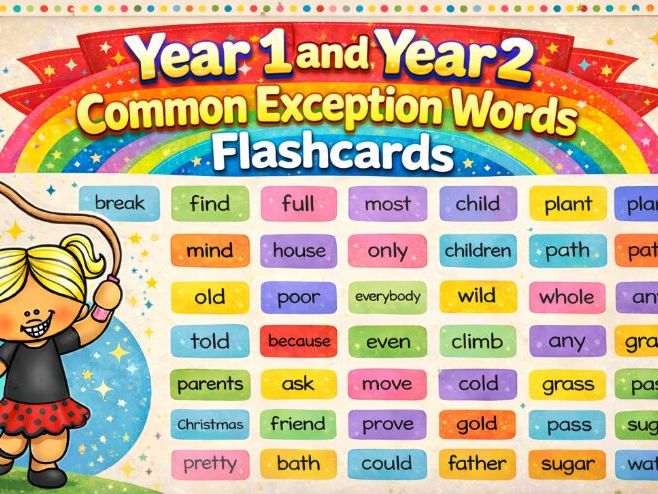 The statutory requirements of the Year 2 Spelling Curriculum include the common exception words: door, floor, poor, because, find, kind, mind, behind, child, children*, wild, climb, most, only, both, old, cold, gold, hold, told, every, everybody, even, great, break, steak, pretty, beautiful, after, fast, last, past, father, class, grass, pass, plant, path, bath, hour, move, prove, improve, sure, sugar, eye, could, should, would, who, whole, any, many, clothes, busy, people, water, again, half, money, Mr, Mrs, parents and Christmas. * ‘children’ is not an exception to what has been taught so far but is included because of its relationship with ‘child’.