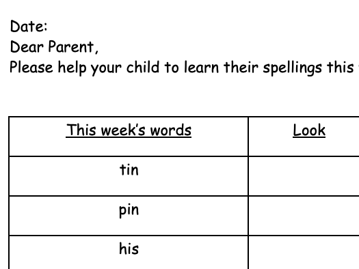 A set of differentiated spelling list with the 2 pronunciations for the sound ‘i’