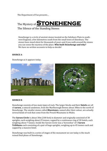 An activity based worksheet showing the difficulties of doing history without written records. Designed to enable weaker students in KS3 to complete most of the tasks or could be used at KS2.