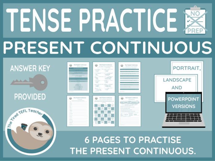 A simple, no-frills set of worksheets to introduce and practise using the present continuous. Includes an explanation and examples of the present continuous, multiple choice questions, sentence unscramble, sentence completion and speaking activities and a homework worksheet. Portrait, landscape and Powerpoint version included. Answer key provided.
