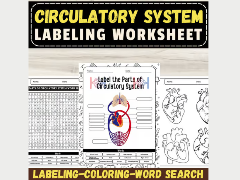 Explore the intricate network of the circulatory system with our comprehensive labeling worksheet set! Designed for educational purposes, this set provides an engaging way for students to learn about the anatomy and function of the circulatory system. Each worksheet features a different aspect of the circulatory system, accompanied by coloring pages and a word search to reinforce learning and retention.
