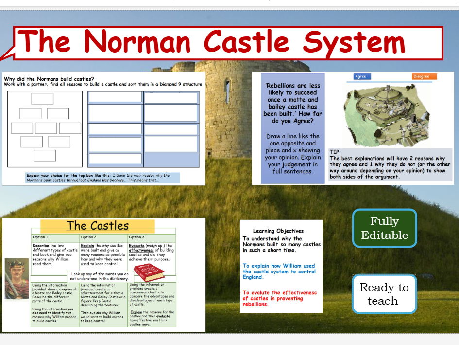 This lesson is part of a 10-lesson unit on Norman control of England and focuses on the castle-building programme introduced by the Normans to secure and maintain power after 1066.