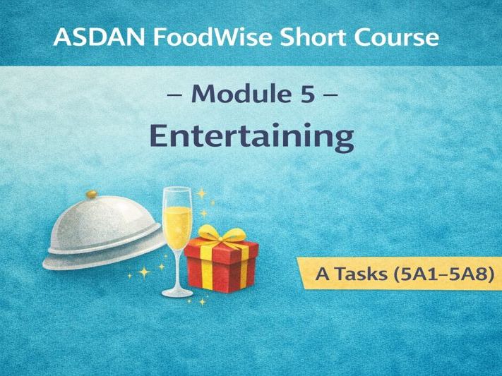 This resource pack supports delivery of the ASDAN Foodwise Short Course – Module 5: Entertaining, covering tasks 5A1- 58.
