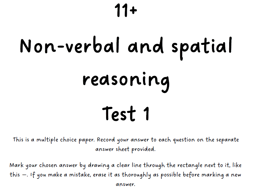A non-verbal reasoning test created by an experienced primary school teacher and 11+ tutor. This is ideal for test practice prior to the exam and assessing the key skills needed for the 11+ and independent school entrance exams.