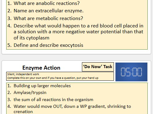 This resource includes over 75 separate slides of multiple detailed question and answers for A Level OCR A Biology in the following topics: