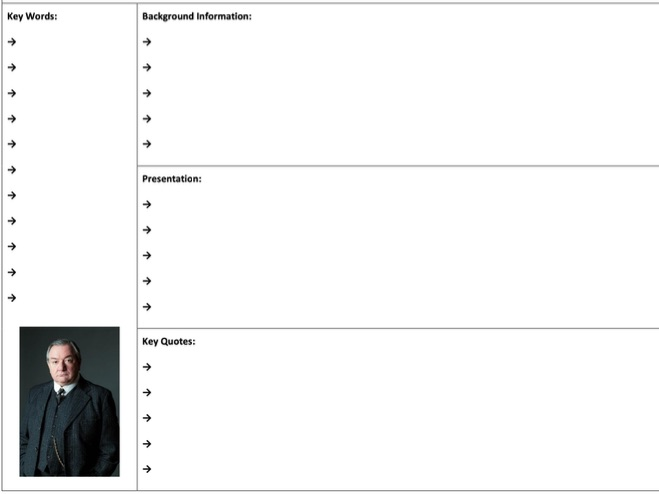 Tables for each character for students to write brief notes on key areas of analysis. Great for independent revision task.