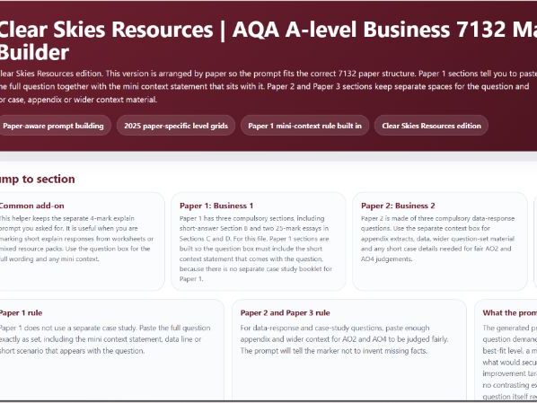 This resource enable students to enter questions, case studies and answers and creates a marking prompt that can be copied into any AI marking website.