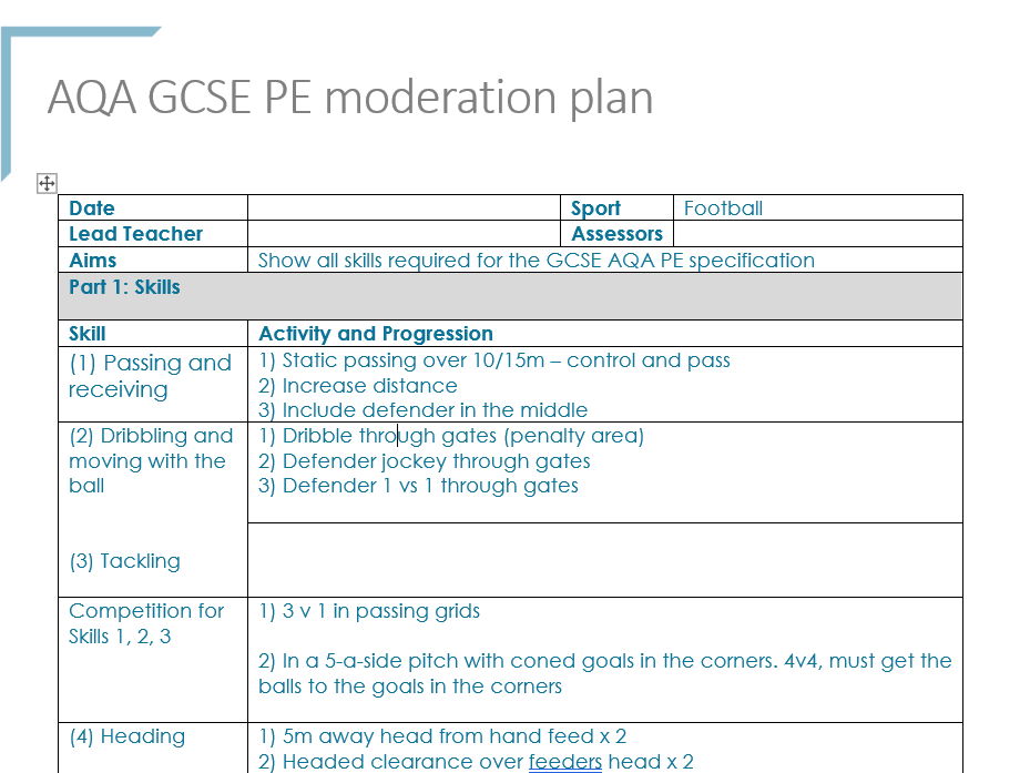 These can be used live or given to parents/carers/external coaches if it is needed to be recorded Sports included: