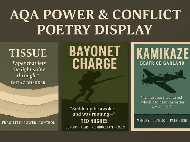Transform your English classroom with this beautifully designed set of A4 / A3 printable posters for the AQA Power & Conflict anthology. Each poster features: