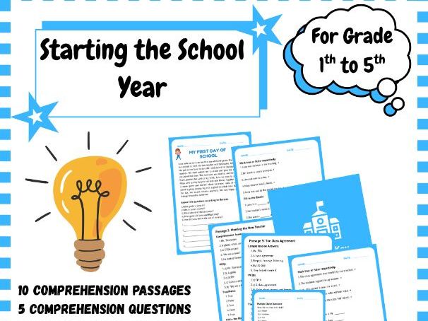Engage students with fun Back to School reading comprehension passages featuring multiple-choice, true/false, and fill-in-the-blank activities. Perfect for elementary classrooms, these worksheets build reading, vocabulary, and critical thinking skills. Great for 2nd–5th grade ELA practice and first-week-of-school activities.