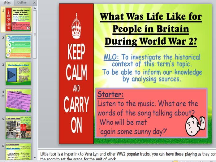 This lesson is to introduce students to the Home Front in Britain in World War Two. An active lesson it contains a carousel activity and the use of contemporary music from a youtube link engages students in to this source analysis lesson.