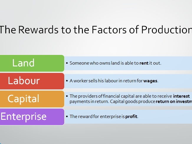 Key economic concepts, including the economic resources of land, labour, capital and enterprise.