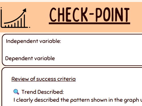 Boost your learners confidence in graph interpretation and scientific conclusions with this easy-to-use, adaptable checkpoint worksheet. Suitable across all key stages, this engaging resource helps students self-assess and improve their graph analysis skills with clear success criteria and targeted next steps.