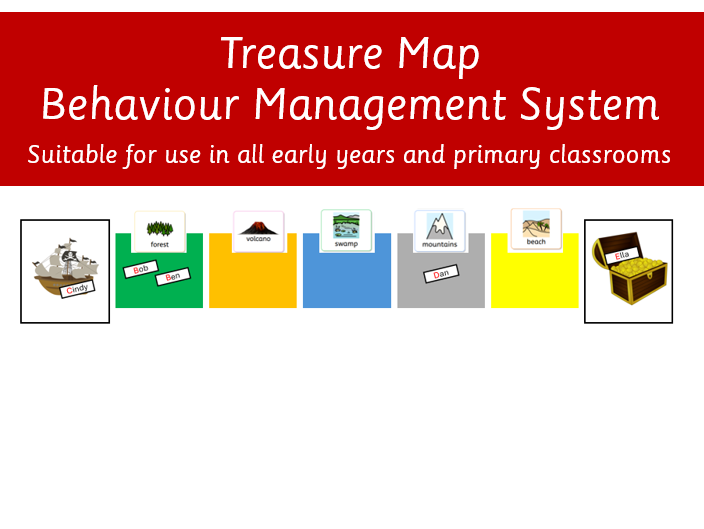 The treasure map is displayed at the front of the classroom so that children can track where they are at any point in the day.