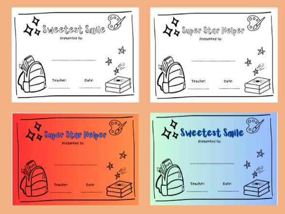Finish off your school year with this fun awards certificates. Resource includes 38 different awards (both in black and white and colour).