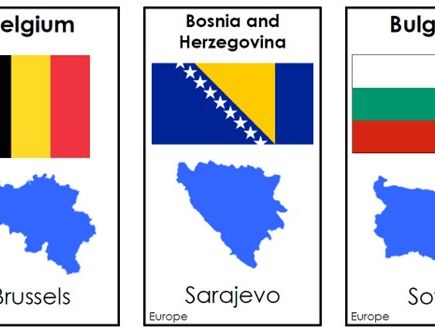 Country name, flag, shape and capital city.
