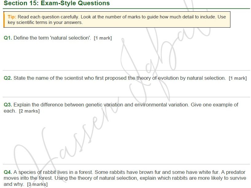 This booklet takes students through the full narrative arc of natural selection — from what a species is, through Darwin’s theory, to real-world case studies and speciation — using gap-fill and scaffolded questions that make each step concrete rather than abstract. It’s packed with applied examples (giraffes, woolly mammoths, warfarin-resistant rats, peppered moths, antibiotic-resistant bacteria) so students see the same process playing out in different contexts, which is exactly what examiners reward.