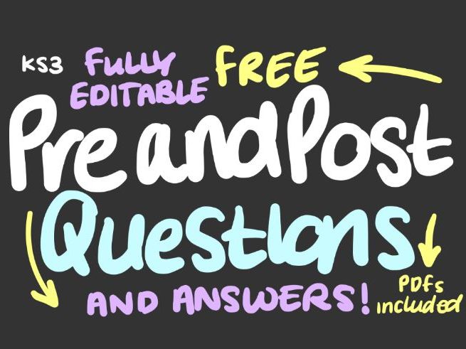 KS3 Appropriate, Before and After Questions, Pre and Post Learning Questions, Fully Editable, PDF Versions included, Consistent 10 marks on each sheet. Perfect for classroom learning and setting relevant homework or pre and post learning review. Answers Included!