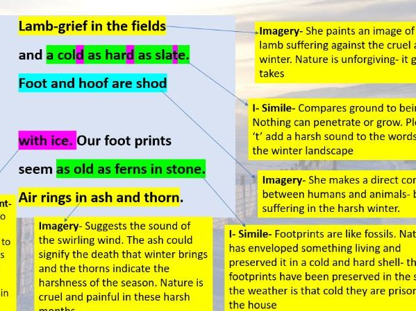 Resource includes power-point which has group and paired tasks, detailed teacher-led annotation, contextual info and a poetry analysis worksheet.