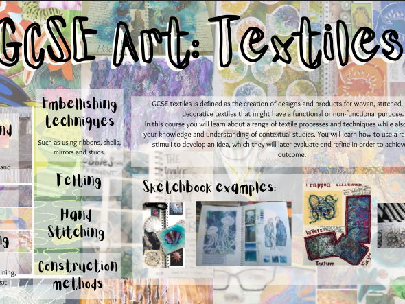 This resouce can be displayed or printed as information on the GCSE Art and Design Textiles course. The resource could be used on open evenings, options evenings or as print outs.