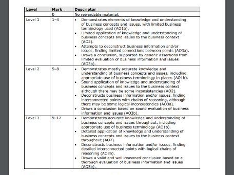There is also a broken down version of the mark scheme into an understandable grid. This can be used with students so they understand what is required.
