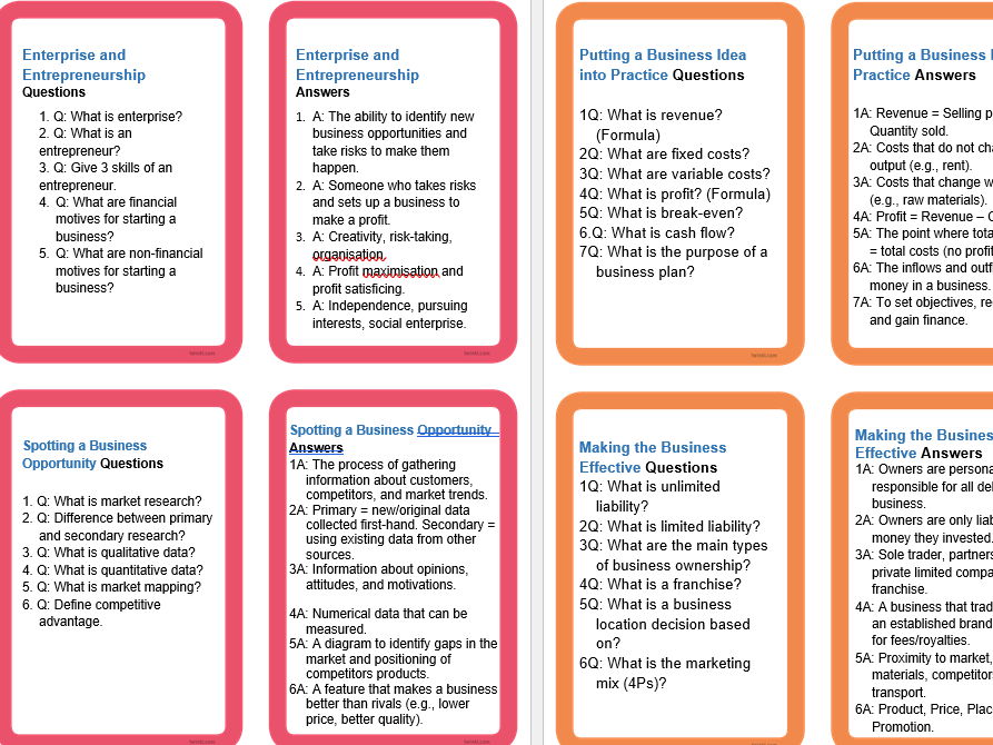 One card has the question, the other has the answer so that they can be laminated back to back for students to take home and use with a peer.