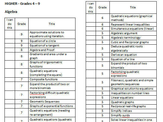 Checklist for Students sitting GCSE Edexcel Maths New Spec