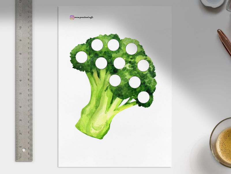 Practise fine motor skills using pinchy fingers and tweezers. Match the coloured pom-poms to the different vegetables.