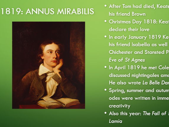 This is a set of 12 lessons and 3 revision lessons for teaching the Edexcel A Level texts. NB there are not detailed notes on the poems - the focus is more on context, concepts, Keats’ ideas and essay writing skills. I’ve included my hand-written timeline of the Romantics and an introduction to Romanticism. There are exam board questions and exemplars as well as questions that haven’t been asked yet.