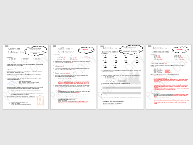 A set of differentiated worksheets to work on fluency of addition and subtraction, reasoning skills and deeper understanding and application of skills. They include basic number sums and word problems.