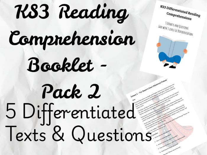 This KS3 Reading Comprehension resource (Pack 2) contains five fiction passages, each written at three differentiated levels (easy, medium and hard). Every passage includes 5–7 comprehension questions carefully matched to the level, making it easy to stretch, support and challenge learners.