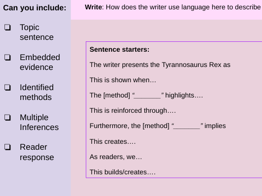 Slide 4 - Write: sentence starters provided alongside success criteria