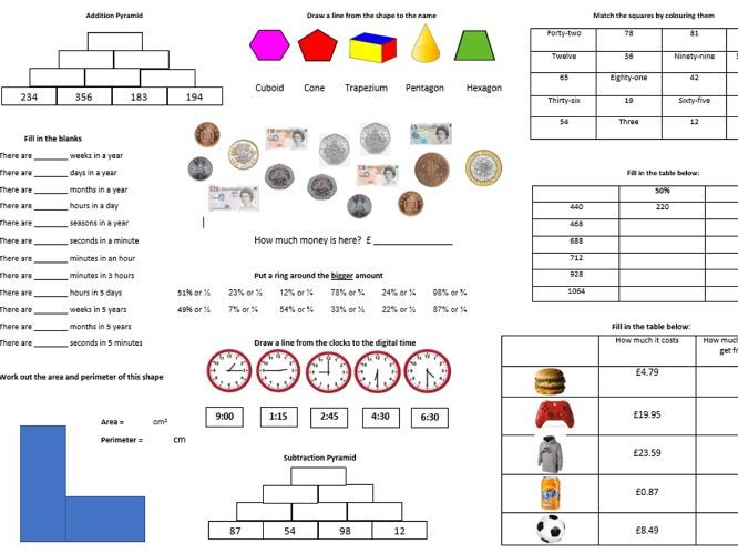 Engaging EL3 maths mat covering number, time, money, shape & more. Perfect for baseline, revision or plenary. Fully aligned to FS Maths criteria.