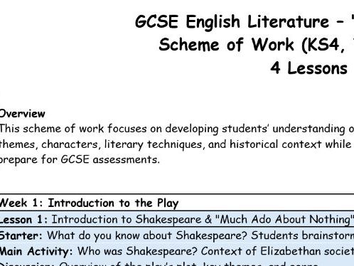 A SOW / SOL based on the introduction to Much Ado About Nothing. *6 weeks worth of lessons, 4 lessons per week. *