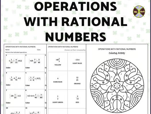 This coloring activity provides students with 12 challenging problems. Students will perform operations with rational numbers. After solving a problem, the students find their answer in a table. This tells them what color to use in the coloring page. Students are asked to show work on a recording sheet provided.