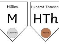 Display resource for working wall, place value from thousandths to miliions with coloured place value counters to match Power Maths and WRM. In addition to the bunting, matching place value grids covering KS2 whole numbers.