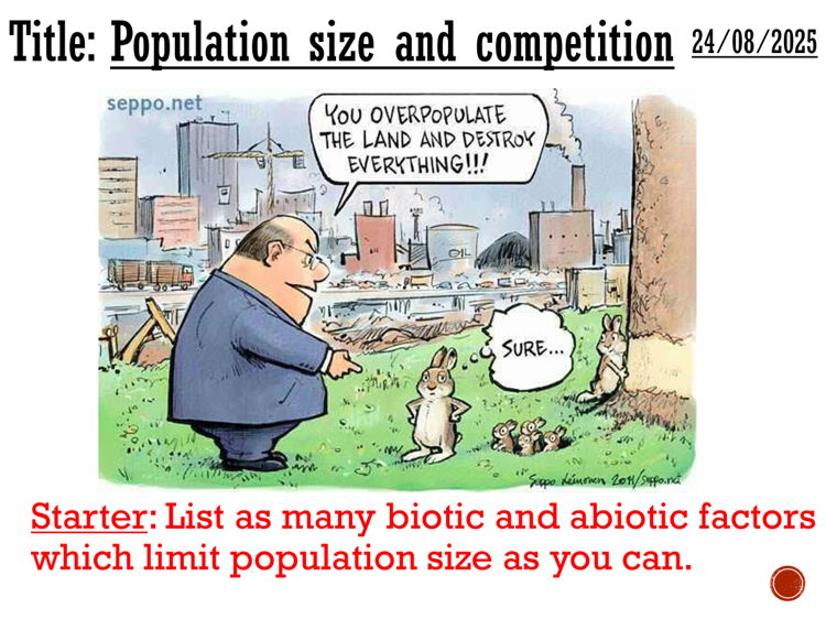 A full differentiated lesson based on the OCR-A SOW. This lesson was used by myself for an A2 class but the content is simple enough for AS. The lesson covers sigmoidal population growth curves, abiotic and biotic limiting factors, migration and density independent factors. Student understanding is then checked through the use of a differentiated question grid tailored to the lessons LO. Students are then introduced to intra and interspecific competition using examples. The red/grey squirrel example is discussed. Students then apply their learning to 2 exam style questions. The plenary is based upon the students reflecting upon their progress against the learning objectives. All answers are included within the slides facilitating self/peer marking, timers are included to promote pace.