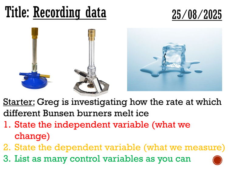 A full lesson based on the Activate 1 (WS 1.3) SOW but can be used for others. This lesson covers experimental variables, recording data, calculating the mean and graph drawing. The main activity involves students doing a simple experiment (2 different types of ball and meter rulers required), recording their results and drawing a bar chart. The plenary is based on students reflecting upon their progress against the learning objectives.