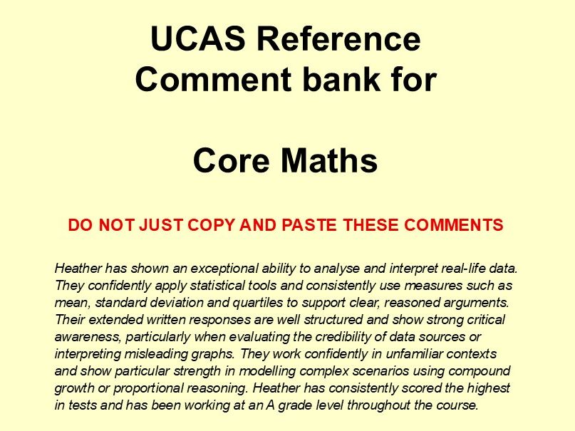 Here’s a bank of comments that might be useful in helping you write UCAS references for the Core Maths courses.