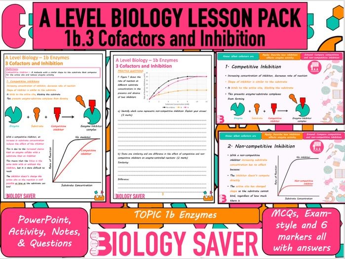 This is an A Level Biology Lesson Pack for 1b.3 Cofactors and Inhibition which is in Topic 1b Enzymes.