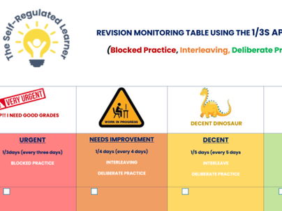 A revision monitoring table which is designed to support students in monitoring their own learning. They use the colour-coded, traffic light system to reflect on their level of understanding of individual topics and skills. It enables them to target areas of weakness and make decisions about how to progress.