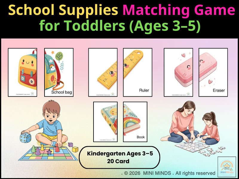 This School Supplies Matching Game is a fun and engaging printable activity for toddlers and early learners (ages 3+).