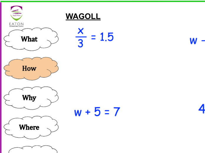 A complete lesson structure on including questions/answers with increasing difficulty on solving equations. This is an introduction lesson only including equations with X’s on one side.