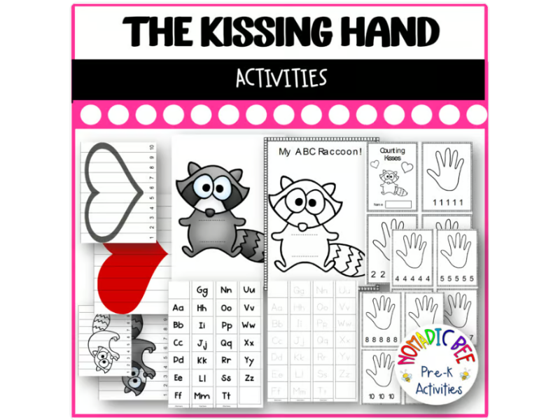 The Kissing Hand Book Extension Activities include Number Puzzles, Alphabet Strips and a ‘Counting Kisses’ printable mini-book.