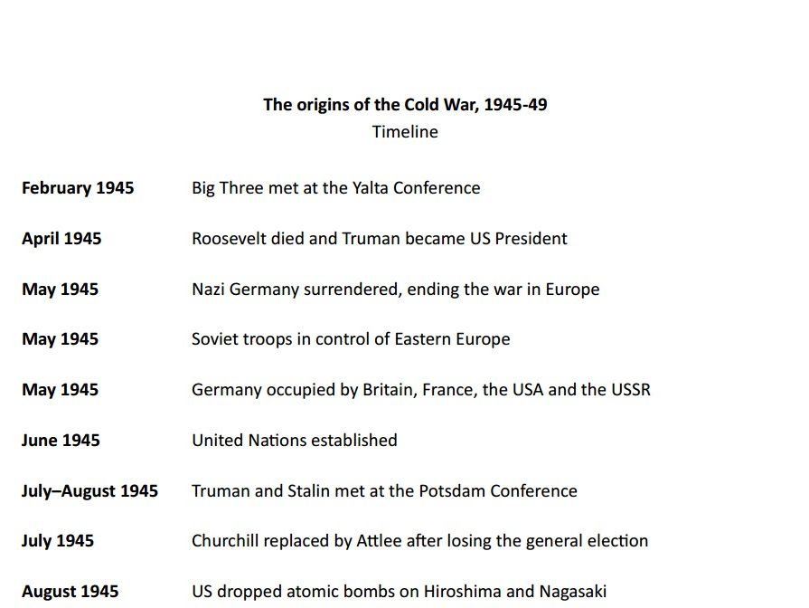 Covers all three units of the first half of the A-level course: origins of the Cold War, widening of the Cold War and the Global war.