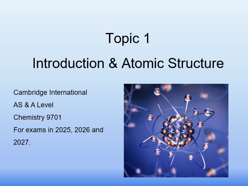 Four lesson unit for Topic 1 Atomic Structure CIE AS/A Level Chemistry (9701). Clear explanations, definitions and equations that match CIE texts/exams. A ready to teach unit ideal for new and experienced teachers.